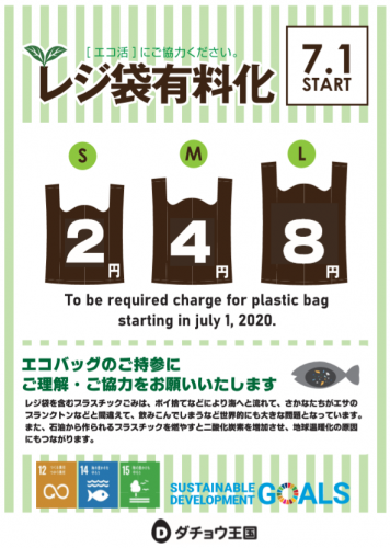 2020年6月30日 / 最終更新日時 : 2020年6月30日 dacho-oukoku お知らせ 7月1日(水)よりレジ袋有料化のお知らせ ダチョウ王国石岡ファーム・袖ヶ浦ファームとしても、レジ袋有料化を実施いたします。 ご理解、ご協力のほどよろしくお願い申し上げます。 FacebookXBlueskyHatenaCopy